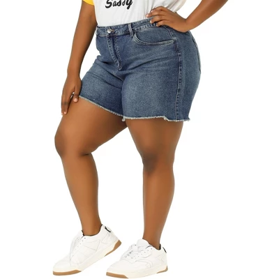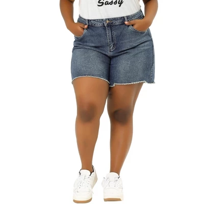 Agnes Orinda Women’s Plus Size Raw Hem Slash Pocket Casual Denim Shorts