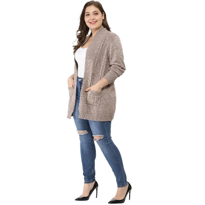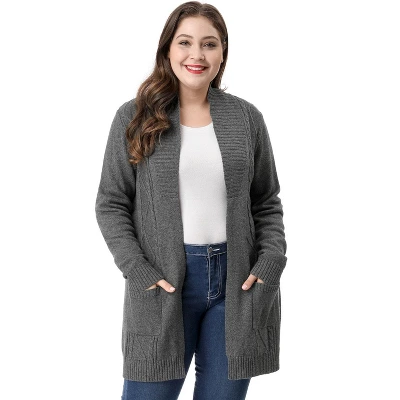 - Features: Open Front, with Pockets, Shawl Collar, Long Sleeve, Cable Detail Front, Midi-Length Sweater, Lightweight Cardigan Shirt