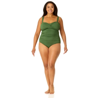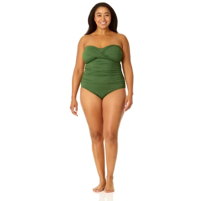 Whether you prefer to swim in the ocean or at a pool, you’ll love our twist front shirred one piece swimsuit This one piece swimsuit features adjustable and removable over-the-shoulder straps to ensure a perfect fit while giving you different ways to style your look. Shirred details and a twist front on this bandeau-style cut give you a figure-flattering look. Pair this twist front shirred one piece with our cover up for casual beach style.