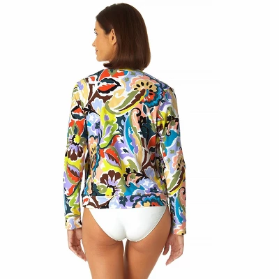 Our colorful Long Sleeve Zip Front Rash Guard Top will not only provide protection for your skin from UV rays, but you’ll also do it in style! This rash guard’s long sleeves provide additional coverage while the front zip detail offers versatility to style in different ways. Whether in or out of the water, this rash guard top will ensure your skin stays protected and warm in the cold ocean water. Add this Long Sleeve Zip Front Rash Guard Top to your wardrobe!