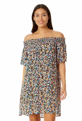 Make a statement with our Smocked Off The Shoulder Swimsuit Cover Up. This vibrant and colorful cover up features an off-the-shoulder neckline that will show off your shoulders and its lightweight and flowy design makes it easy to wear it over your favorite swimsuit whether you are relaxing under the sun, going for a walk along the pier, or going out for a casual meal at night. Don’t miss packing it in your tote for your next visit to the beach.