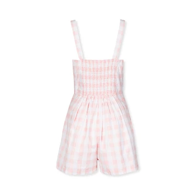 A beautiful sweetheart neckline makes this fun and flirty romper a pretty choice for all of spring and summer’s festivities. Features a peekaboo bow tie front, flattering waist panel, and a smocked back bodice for easy dressing. Fully lined in 100% organic cotton. And did we mention it has side pockets?