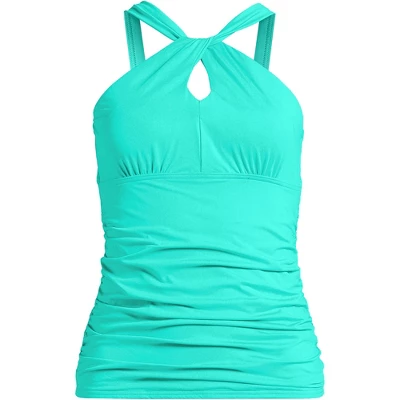 Why settle for one style when you can have multiple ones? Introducing: the high neck to one shoulder multi-way tankini. While the stylish high neck style gives you sun coverage, the adjustable shoulder straps offer you the option to wear it as a one-shoulder one day and as a halter the next, so you never get bored! The flattering shirring along the midsection and all-around bra with sewn in cups allow you to feel supported and confident in and out of the water.