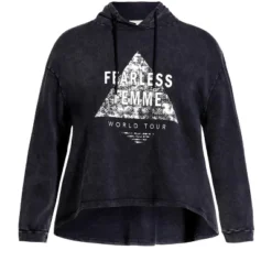 Women’s Plus Size Lila Crop Graphic Hoodie – Black | SOCIETIE+