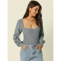The crop sweater top is a must-have item in women’s wardrobes. The square neck design adds a touch of elegance, making it suitable for both casual and formal occasions, like at home, outgoing, date, lounging or any activities. Square neck sweaters for women can create a variety of shapes for you. Long sleeve sweaters are perfect to be paired well with a coat, jeans and leggings, which will make you stand out in autumn and winter.