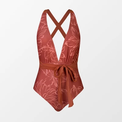 So stylish, this Red Deep V-neck One-Piece Swimsuit is the super femme bathing suit you’ve been looking for. A tie-front detail acts as a belt, and the plunging neckline and the backless design, for a figure-flattering effect. Pair it with your favorite straw hat and sunny and soak up the sun in style. Product Code: DAA12E3C001KK/DAA12E3C001CA/DAA12E3C001RC