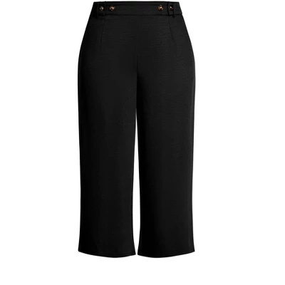 The Button Crop Pant is a crisp staple perfect for the modern woman. Designed to flatter a curvaceous figure, these culottes offer a high waist fit, floaty wide leg and polished cropped hemline.Bold and fiercely fashionable, no one does plus size fashion like City Chic. Loved around the globe for its diverse range of fashion-forward styles for any occasion. From show-stopping evening gowns to workwear and casualwear, City Chic will take your style to bold new heights. Available in sizes 14-32.
