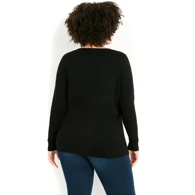 The front sequin detail of our Lapland Jumper adds just the right amount of sparkle, making it perfect for holiday parties or family gatherings. The soft stretch fabrication is comfortable and flattering, and the relaxed fit allows you to move and breathe easily.Casual and effortless, Evans makes everyday style oh-so-easy. This beloved English brand offers quality, curve-loving pieces for any occasion that will make you look and feel your best. From easy-going dresses to statement essentials, Evans is comfortable, tasteful and perfect for your everyday wardrobe. Available in sizes 14 – 32.