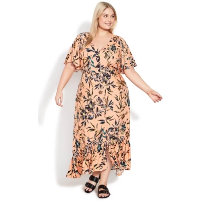 Looking for a dress that will make a statement? Look no further than the Sasha Flutter Sleeve Maxi Dress! This gorgeous dress is printed with a beautiful design and drapes effortlessly over your curves. The self-tie waist gives the dress some shape, while the flutter sleeves add a touch of elegance.Casual and effortless, Evans makes everyday style oh-so-easy. This beloved English brand offers quality, curve-loving pieces for any occasion that will make you look and feel your best. From easy-going dresses to statement essentials, Evans is comfortable, tasteful and perfect for your everyday wardrobe. Available in sizes 14 – 32.